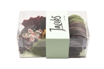 Een doosje met mooie kerstchocolade, zoals kransjes en hulstblaadjes.