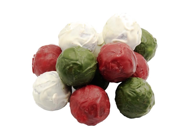 Onze heerlijke crispyballen in kerstkleuren. Per 12 verpakt.