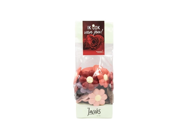 Harten chocoalde in melk, puur, wit en musket. Zakje a 200 gram.