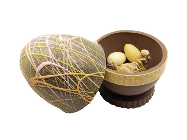 Luxe paasei van pure chocolade met heerlijike paas bonbons.